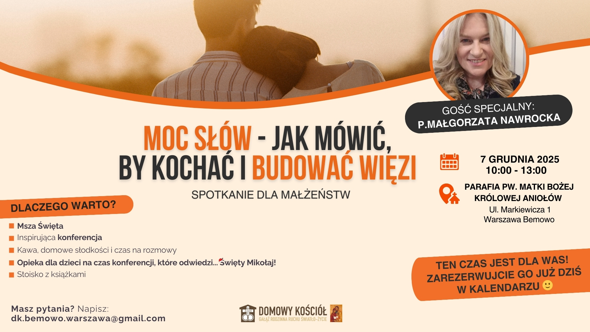 „O mocy słów”. Domowy Kościół na Bemowie zaprasza małżeństwa na kolejne spotkanie o budowaniu więzi – tym razem z Małgorzatą Nawrocką.