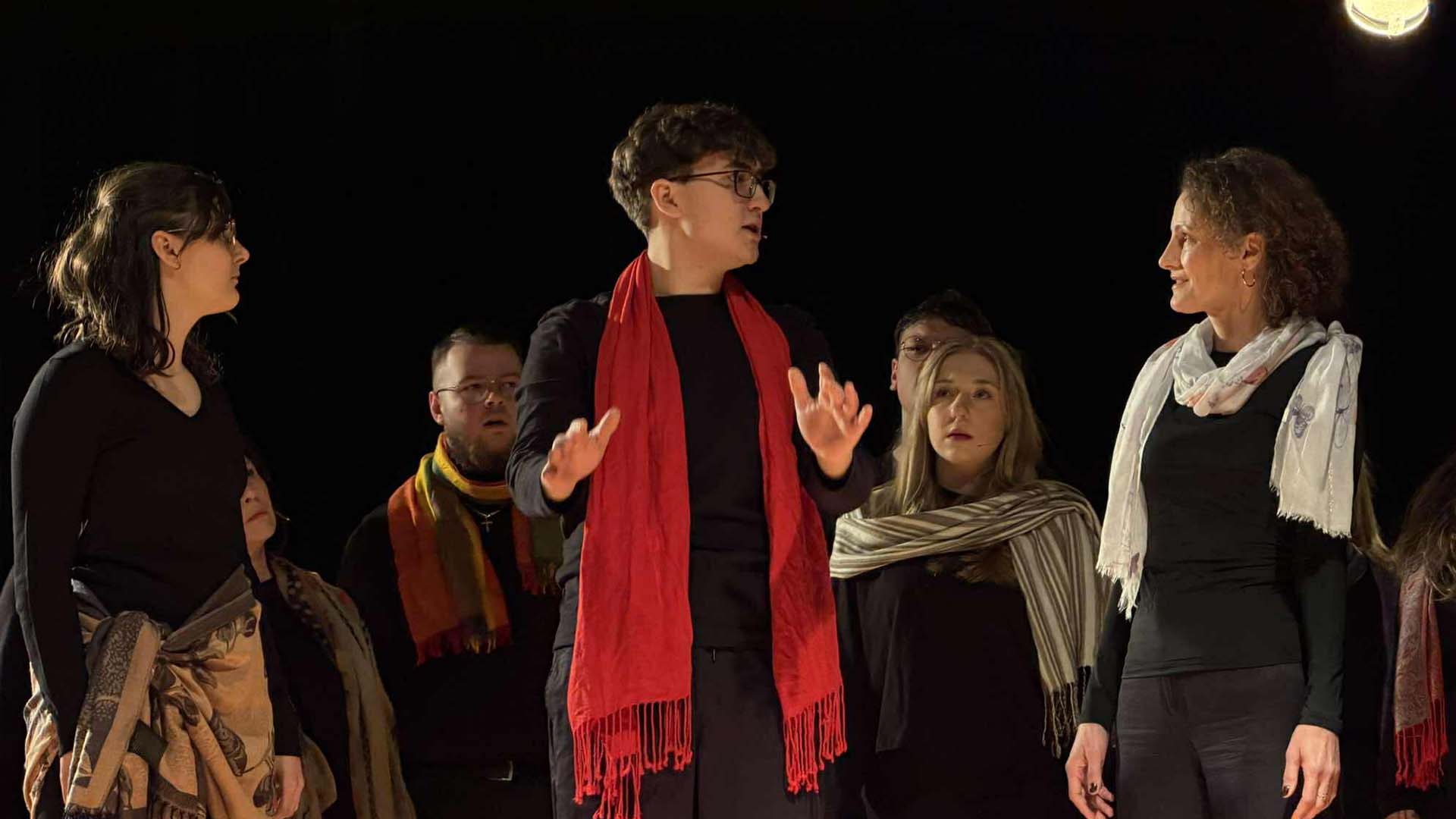 Nie tak dawno temu, w ogłoszeniach parafialnych mogliśmy usłyszeć o powstającym teatrze przy parafii. W połowie listopada zaczęły się pierwsze próby, a niewiele później uformowała się stała grupka osób gotowych do występów. Ludzi w różnym wieku i na różnym etapie życia - nauczycielka, studenci, informatyk, zawodowy aktor… 18 stycznia na scenie w dolnym kościele wystąpili jednak sami amatorzy. Bowiem p. Piotr Furman (aktor z Teatru Rampa), twórca spektaklu “A my do Betlejem…”, podjął się reżyserii całego przedstawienia. Był to projekt ambitny, bowiem występ miał charakter musicalowo-pantomimiczny. W Polsce co prawda “śpiewać każdy może”, ale i tak podziwiam pana Piotra za odwagę i wiarę w nas, zanim jeszcze zaprezentowaliśmy nasze możliwości wokalno-aktorskie. Dotychczas jego sztukę wykonywali zawodowi aktorzy… Nasz reżyser jednak wiedział co robi, ma bowiem doświadczenie w prowadzeniu warsztatów aktorskich dla ludzi w różnym wieku.