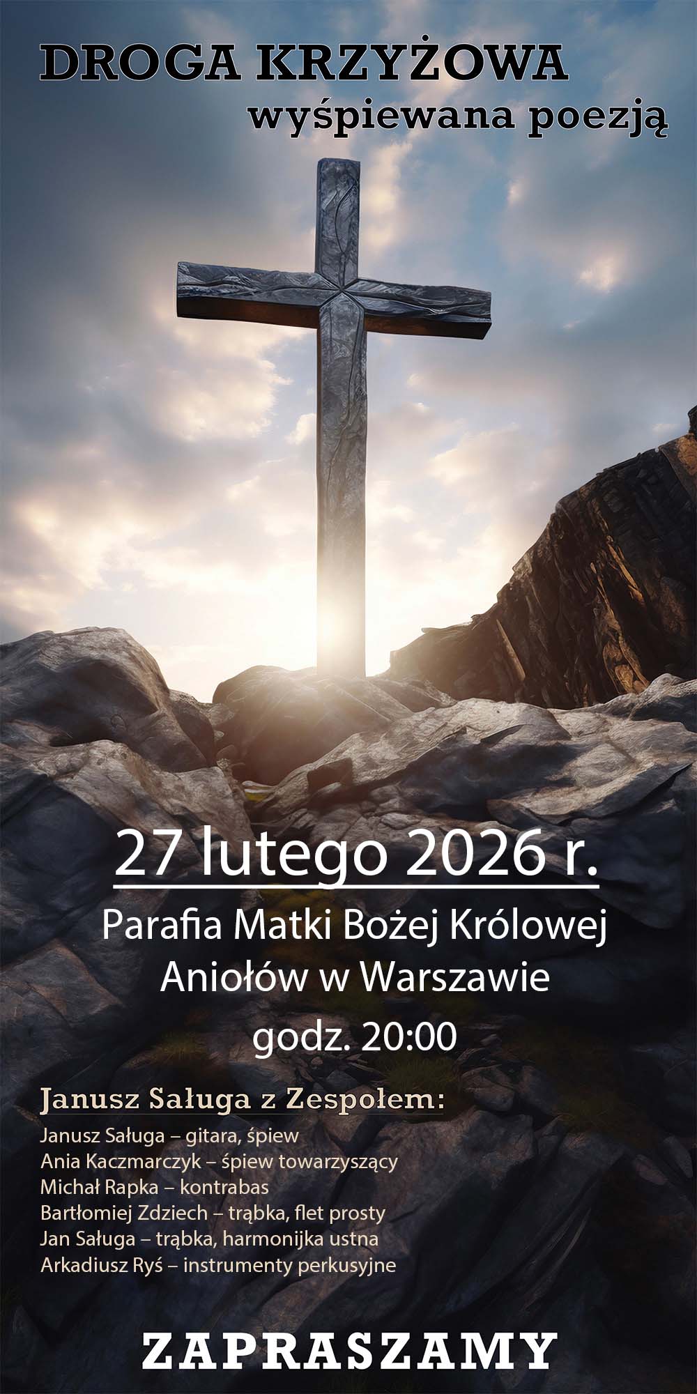 W piątek 27 lutego 2026 roku o godzinie 20:00 w kościele odbędzie się wyjątkowe wydarzenie modlitewne – „Droga Krzyżowa wyśpiewana poezją”.