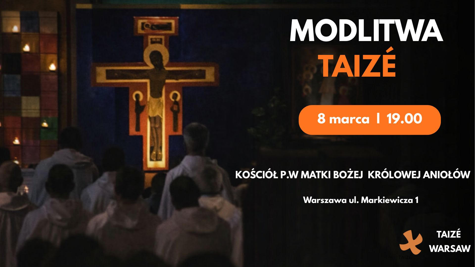 Serdecznie zapraszamy wszystkich Parafian – młodzież i dorosłych – na modlitwę w duchu Taizé, która odbędzie się 8 marca o godz. 19:00 w Kaplicy Aniołów, bezpośrednio po Mszy Świętej o godz. 18:00.