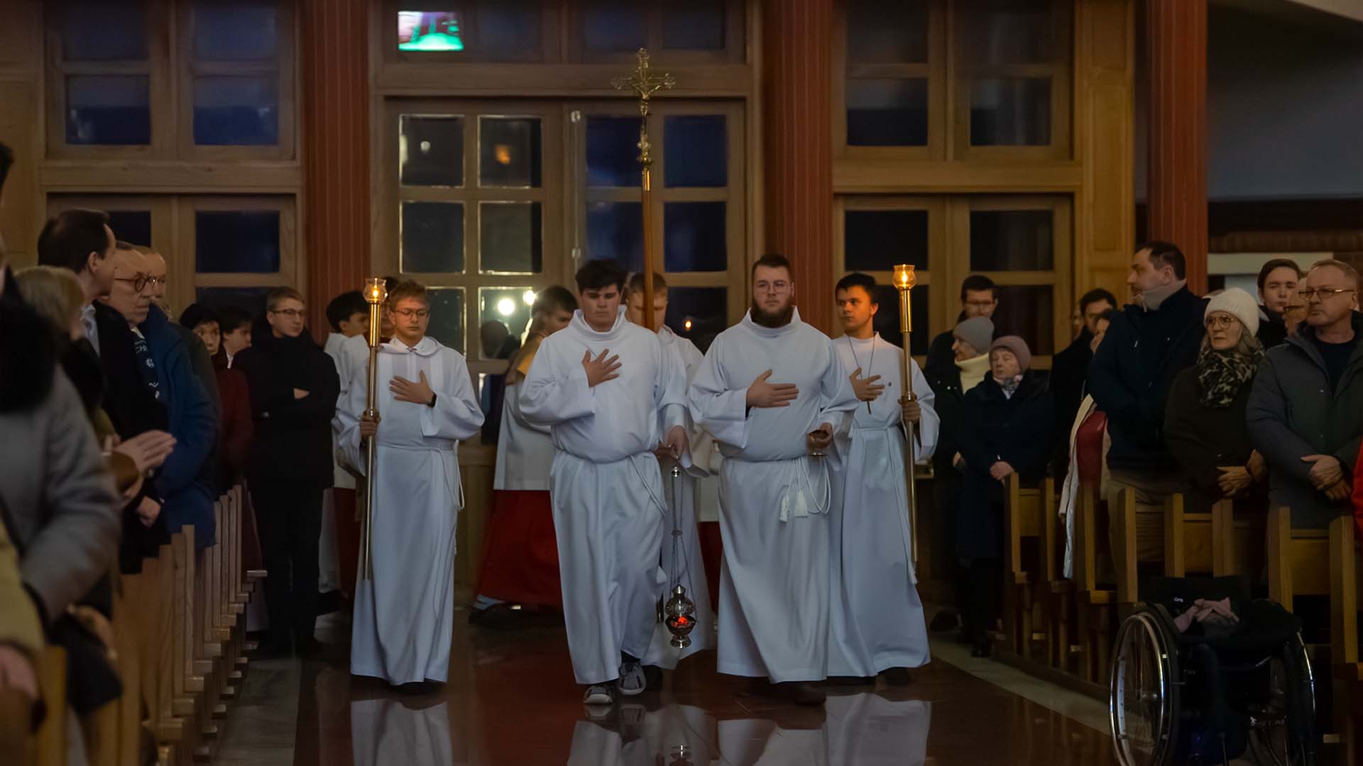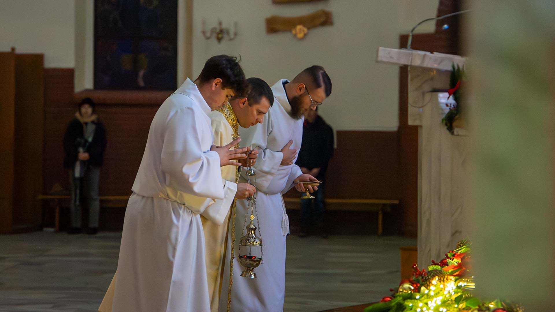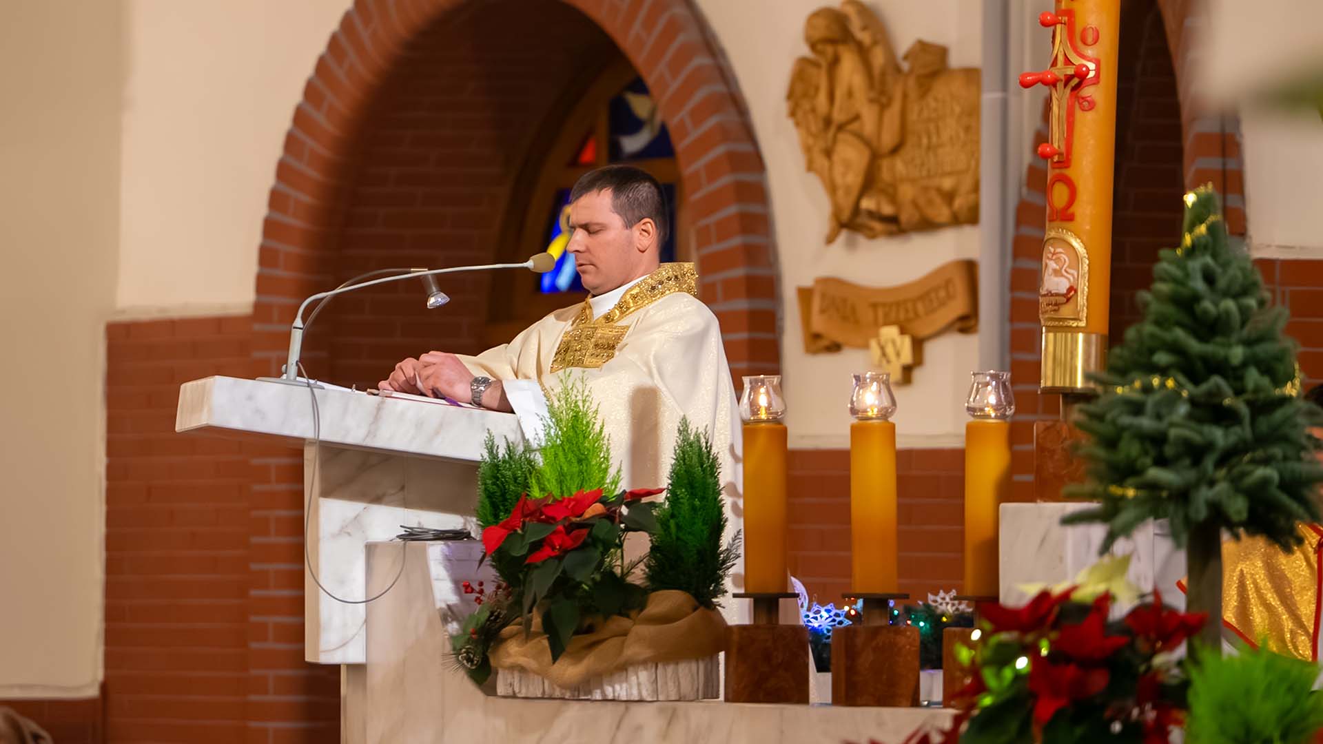 O północy, celebransem Mszy Świętej był ks. Jakub Kasprzycki, wikariusz parafialny oraz prefekt domu zakonnego.