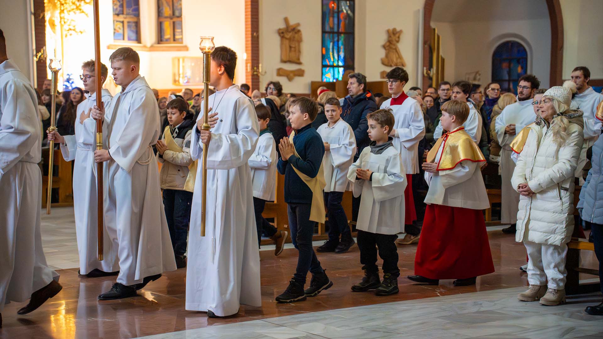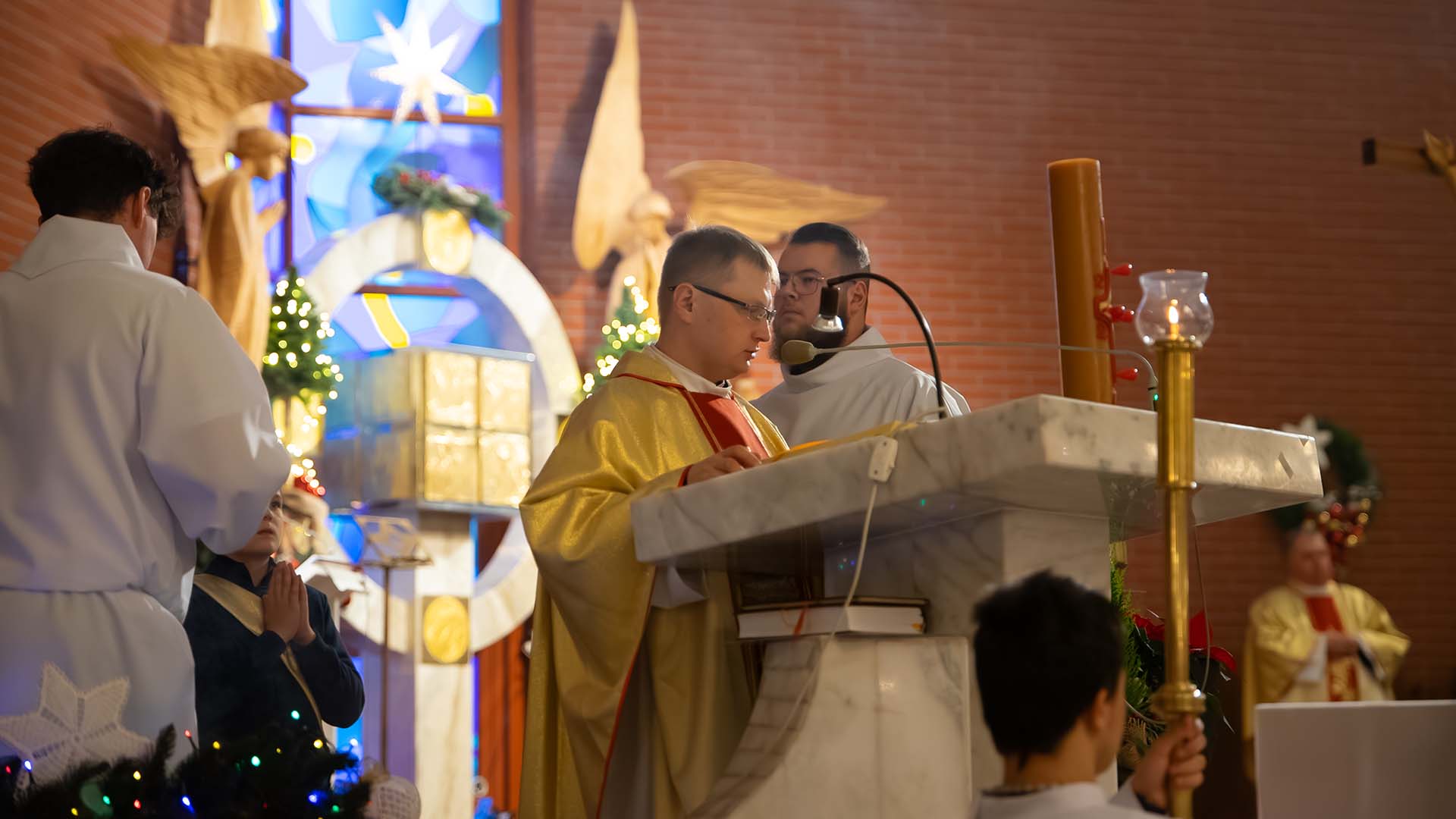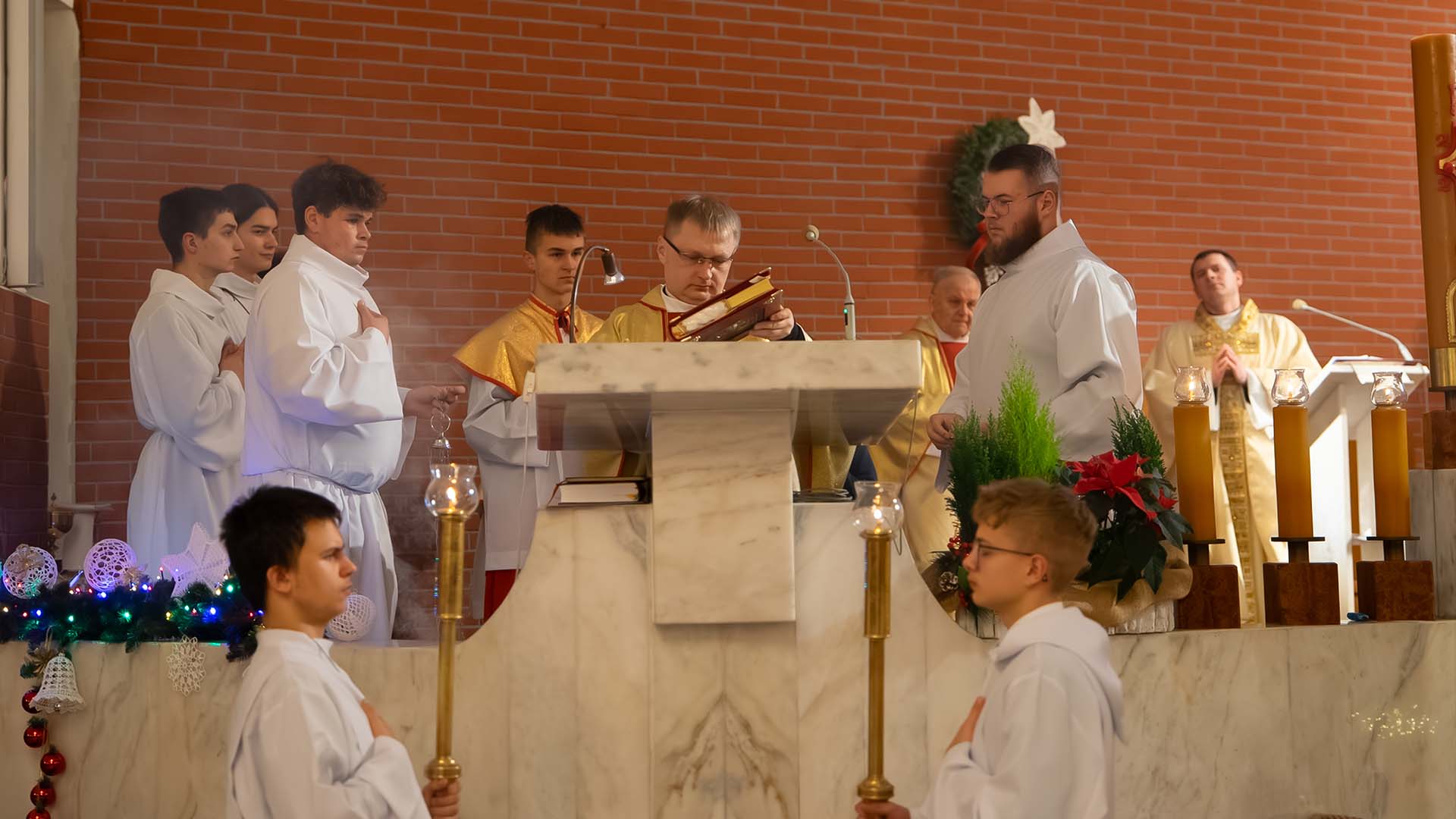 O północy, celebransem Mszy Świętej był ks. Jakub Kasprzycki, wikariusz parafialny oraz prefekt domu zakonnego.