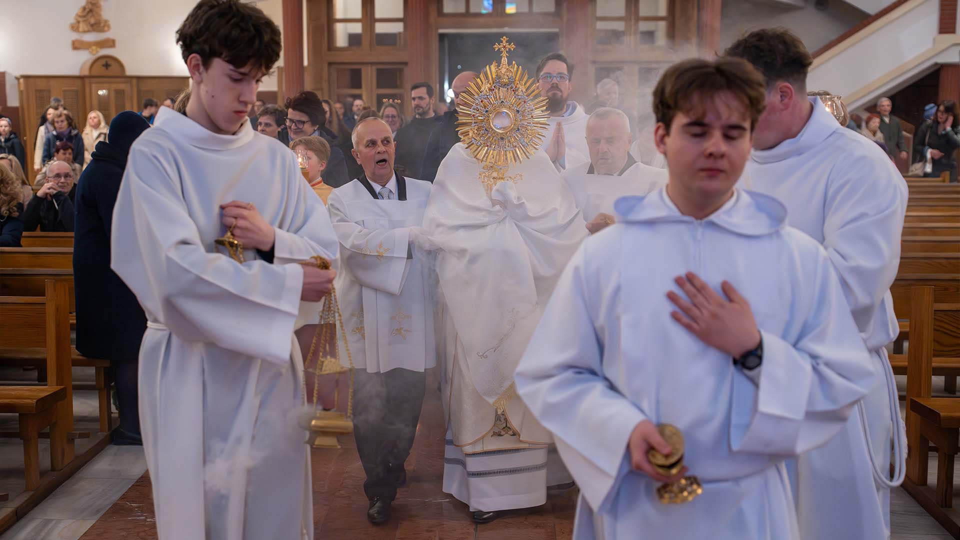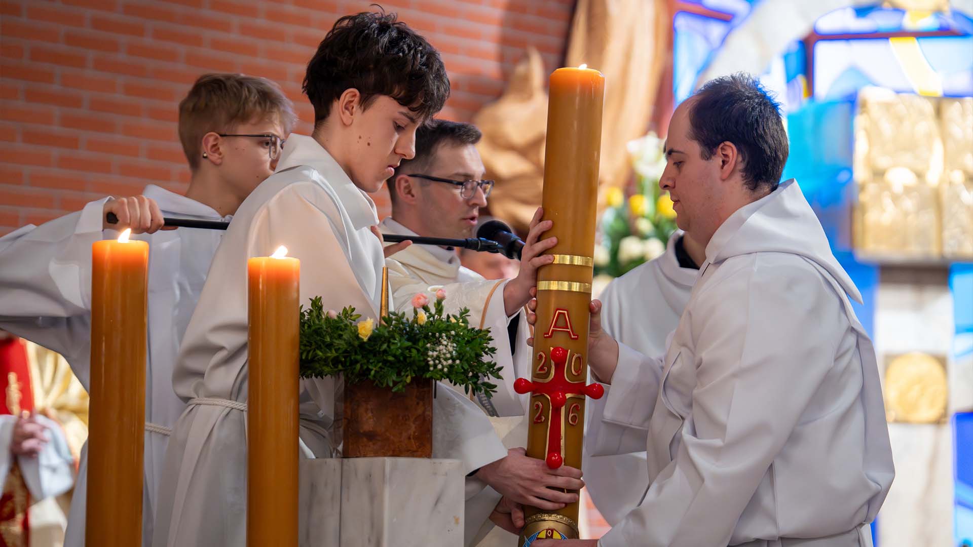 Następnie wsłuchamy się w uroczyste Orędzie Paschalne – starożytny hymn radości, który ogłasza zwycięstwo Chrystusa i przypomina, że przez Jego śmierć i zmartwychwstanie zostały dla nas otwarte bramy nieba. To noc, w której nawet grzech człowieka został przemieniony przez miłość Boga.