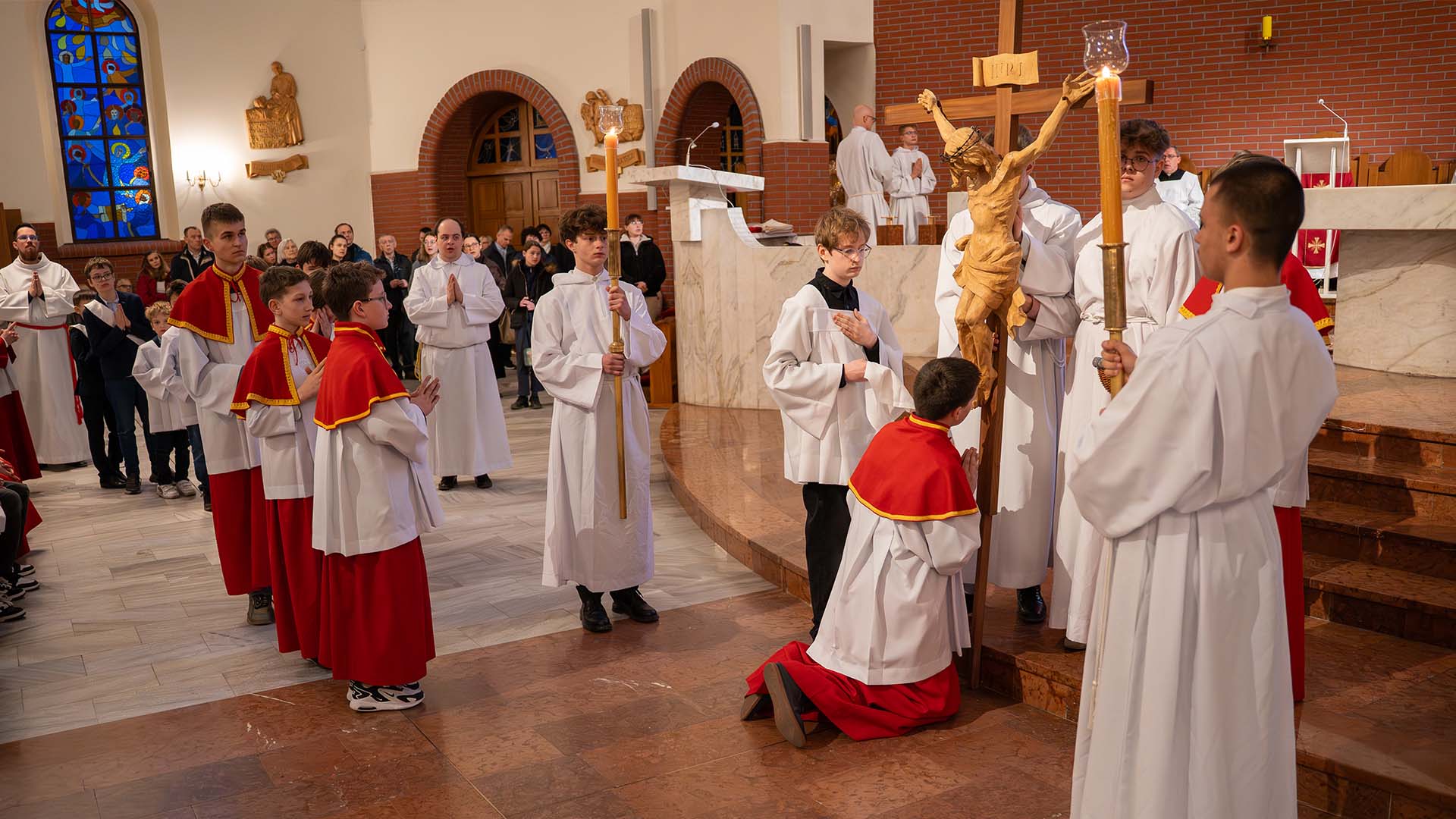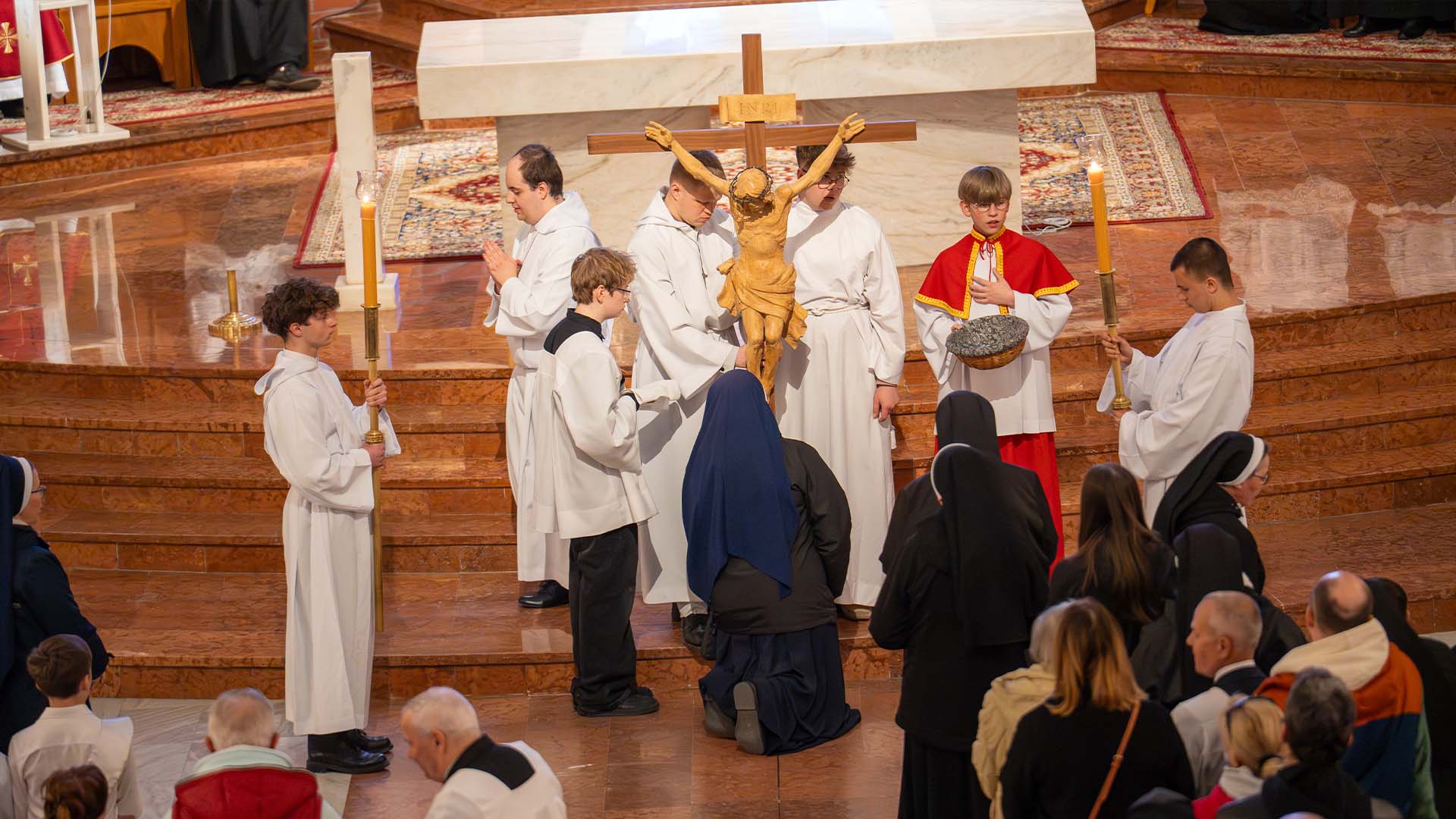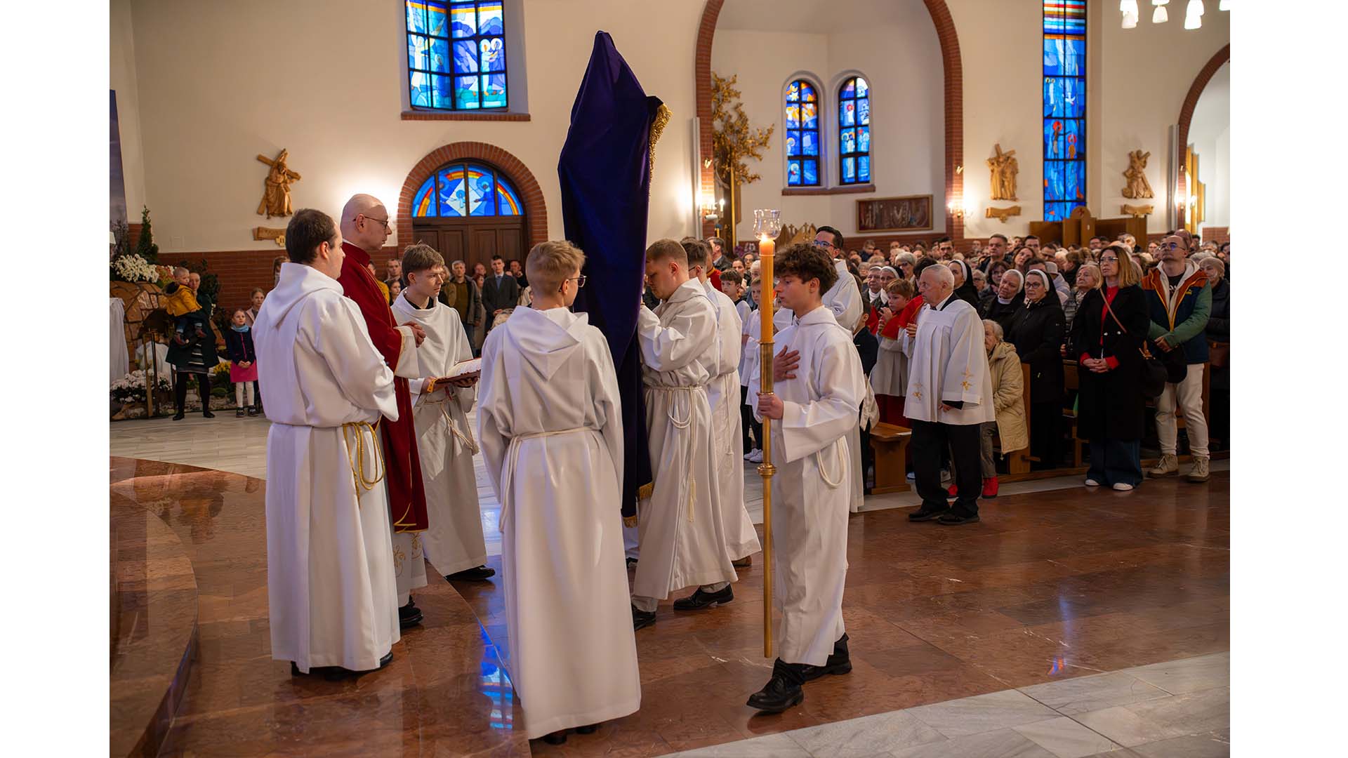 Pamiętajmy o szczególnych znakach czci: od tej chwili aż do Wigilii Paschalnej klękamy zarówno przed Krzyżem, jak i przed Najświętszym Sakramentem wystawionym w monstrancji pod welonem. Ołtarz pozostanie pusty, a nasza nadzieja pozostanie czujna, czekając na blask Nocy Paschalnej.